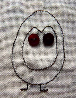 I have harped on an on about my inability to sew anything more complicated than a button so this weekend I decided to do something about it. I bought a little booklet on beginning embroidery, a hoop, some needles, and some embroidery thread. I looked through the book, ignored the patterns, grabbed a pencil and doodled Olwyn and the notorious button thief, and let fly with needle and thread.